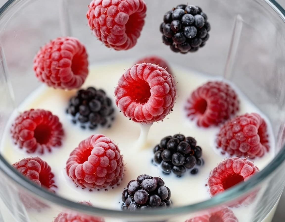 - The Berry Blend: Use a mix of frozen raspberries and blackberries. Frozen fruit acts like ice, creating a thicker consistency without diluting the flavor.